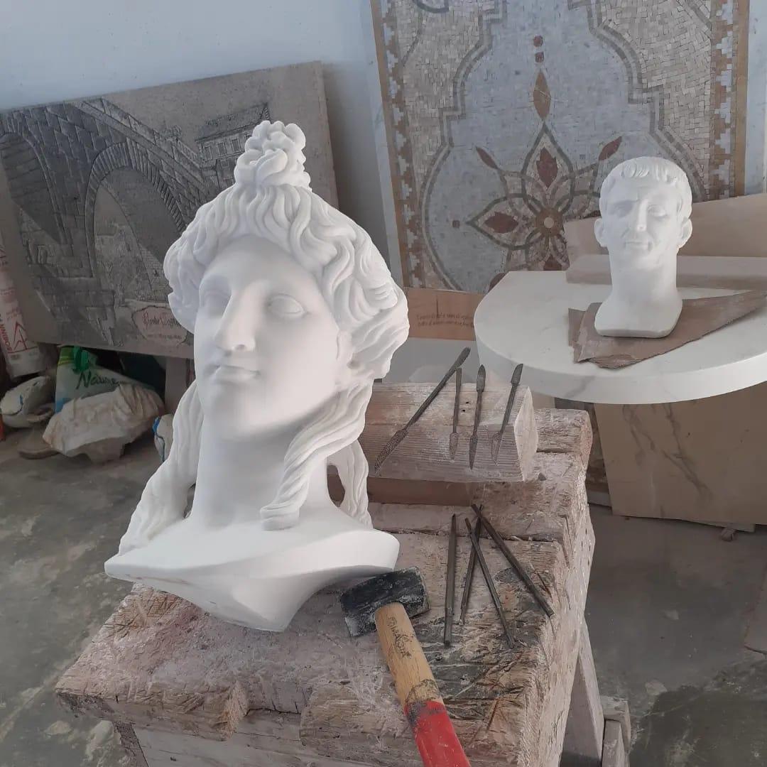 L'Essenza della Perfezione Classica. In quest’opera, Luigi Bombardieri esplora il concetto di bellezza ideale, ispirandosi alla purezza formale dei grandi maestri del Neoclassicismo. La scultura non rappresenta solo un volto, ma un canone di armonia ed equilibrio assoluto, dove ogni lineamento è studiato per trasmettere una serenità senza tempo. Caratteristiche dell'Opera: Il marmo bianco statuario è stato lavorato per enfatizzare il contrasto tra la levigatezza del volto e la complessità dei dettagli: Il Volto: Caratterizzato da una pelle marmorea dalla finitura satinata, che cattura la luce in modo soffuso, tipico delle opere destinate a interni prestigiosi. L'Acconciatura: I capelli sono scolpiti con un dinamismo plastico notevole; le ciocche ondulate incorniciano il viso e scendono con naturalezza lungo il collo, creando un movimento che rompe la staticità del busto. Espressione: Lo sguardo rivolto verso l'alto e l'espressione assorta conferiscono alla scultura un'aura di nobile distacco, elevando il soggetto a una dimensione mitologica o divina. Valore Artigianale: La scelta del marmo statuario garantisce una struttura compatta e una purezza cromatica che solo i blocchi più pregiati possono offrire. La mano di Bombardieri si riconosce nella capacità di rendere "morbida" la pietra, trasformando la durezza del marmo nella delicatezza dei lineamenti femminili. Un pezzo d'arte che trasforma lo spazio circostante, portando con sé l'eredità della grande tradizione scultorea italiana. Per ricevere dettagli sulle opere di Luigi Bombardieri, certificato di autenticità e modalità di spedizione, contatta direttamente l'artista, Invia un messaggio privato tramite WhatsApp: +39 333 3000253 Disponibile per visione in studio delle sue sculture su appuntamento.